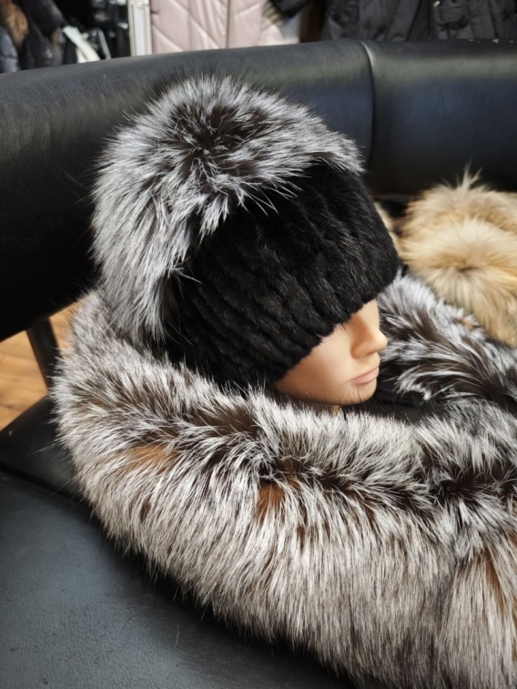 CZAPKA Z NATURALNEGO FUTRA Z NOREK I POMPONEM Z JENOTA LUB SREBRNEGO LISA ROZMIAR UNIWERSALNY